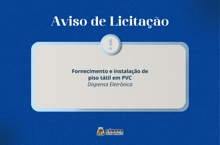 Objeto: Contratação de empresa especializada para o fornecimento e instalação de piso tátil de sinalização e orientação em pvc, para atender às necessidades da Câmara, de acordo com as especificações contidas no Termo de Referência.