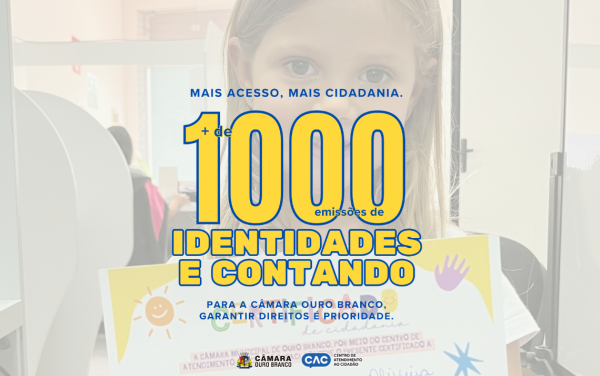Mais de 1.000 emissões da Carteira de Identidade Nacional realizadas pelo Centro de Atendimento ao Cidadão - CAC da Câmara Ouro Branco!